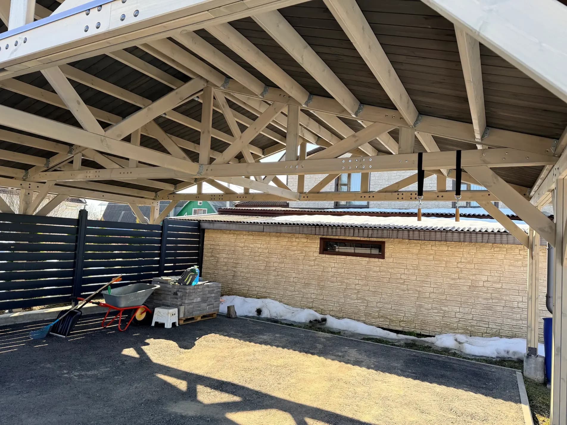 В итоге навес выглядит не временной постройкой, а полноценной частью участка с понятной комплектацией и аккуратным внешним видом.